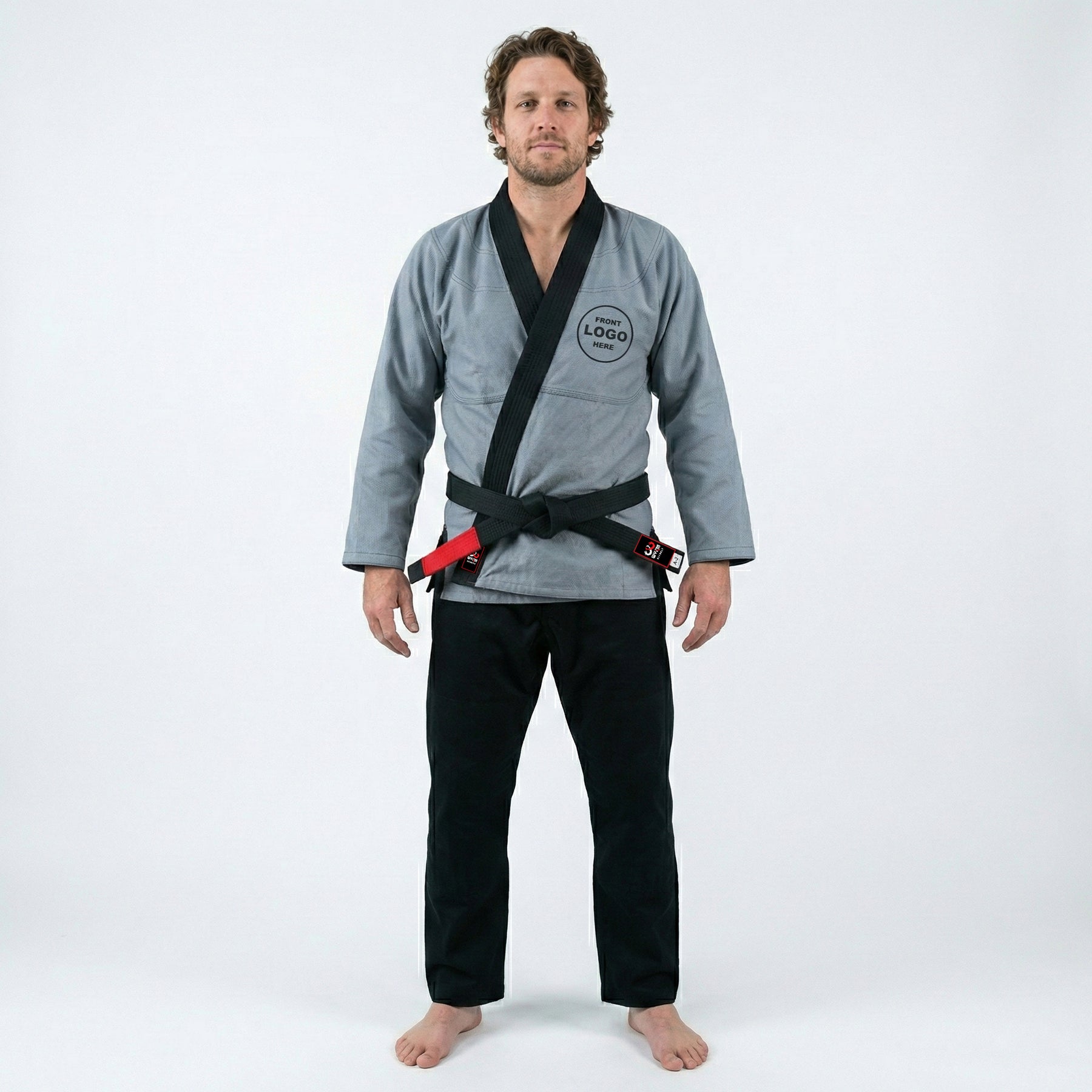 The Custom Grey with Black Lapel BJJ Gi offers a sharp, professional look with full personalization options. Perfect for academies, gyms, or individual practitioners, it lets you represent your identity with precision embroidery or imprint.