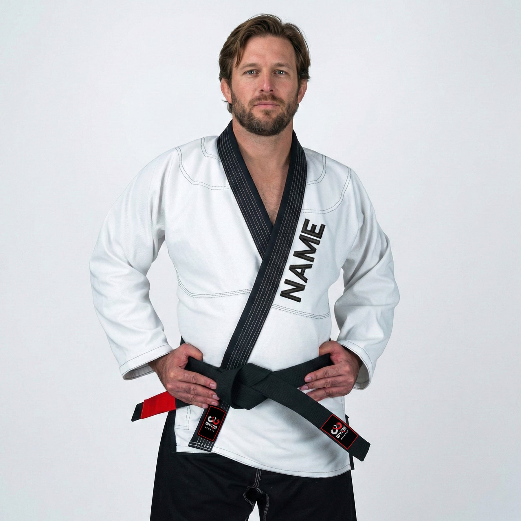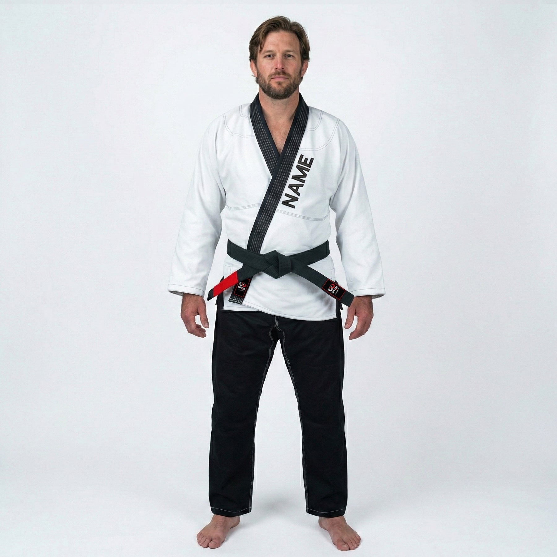 The Customized Logo White with Black Lapel BJJ Gi combines clean aesthetics with full personalization. Built for serious practitioners and teams, it offers durability, comfort, and standout identity through custom embroidery and design.