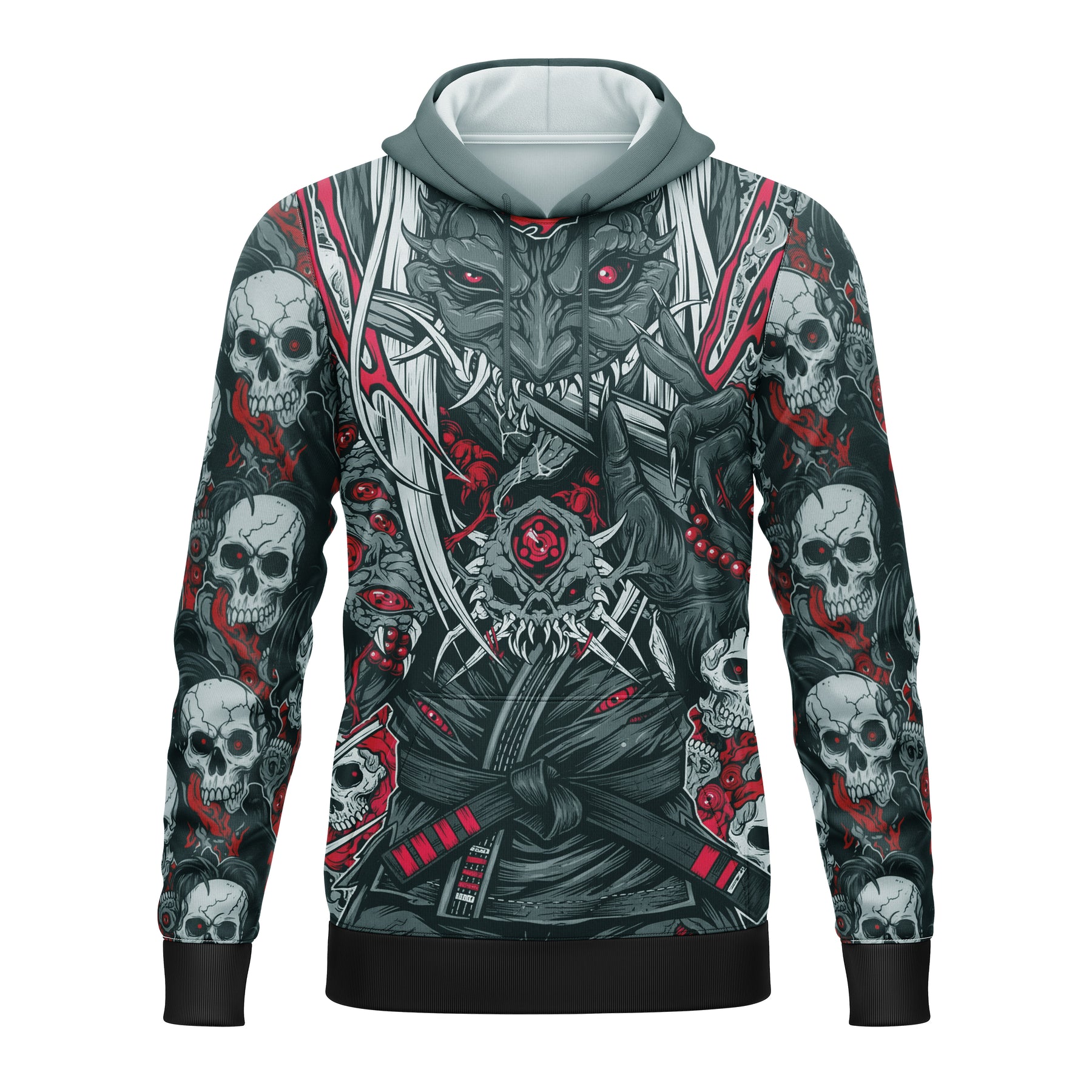 The Soul Reaper Hoodie features a dark, aggressive aesthetic defined by skeletal imagery and a striking masked warrior centerpiece. This premium, airy blend acts as the perfect mid-layer for active warm-ups or elevating your daily rotation.
