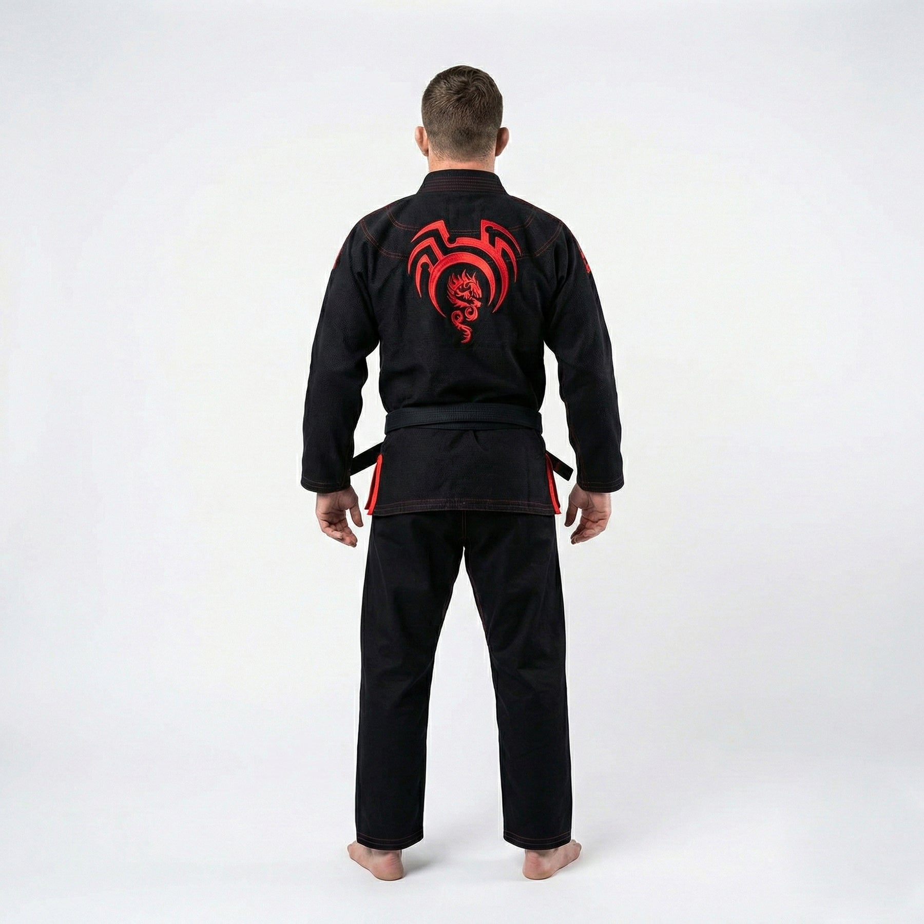 Fabric: Made of 90% pre-shrunk material for a consistent, long-lasting fit. Jacket: 400 GSM pearl weave cotton with sublimated rashguard interior for smooth comfort. Pants: 10 oz ripstop cotton for durability, flexibility, and unrestricted movement. Design: Clean outer look with bold knight-and-dragon sublimation inside. Performance: Lightweight, breathable, and ideal for grapplers who fight with heart and discipline.