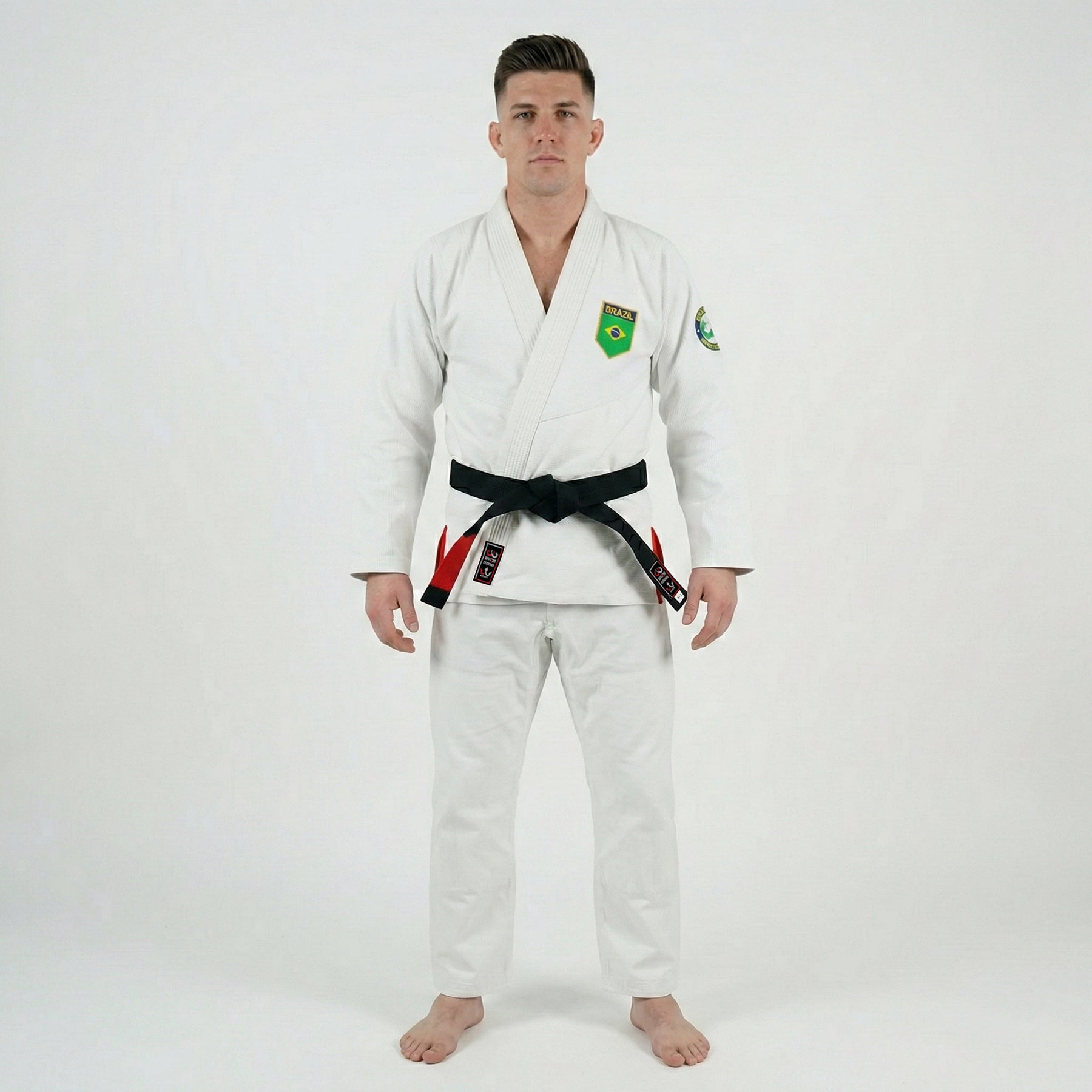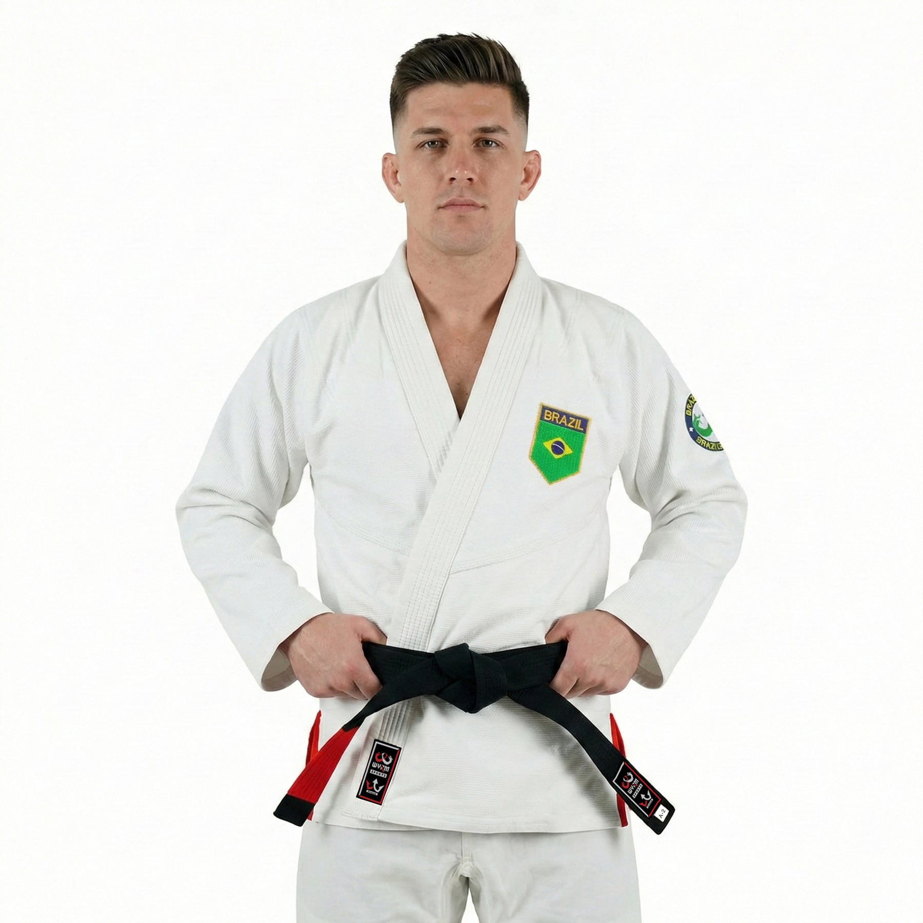 The Brazilian White BJJ Gi honors the roots of Jiu Jitsu with a blend of pride and performance. Featuring a built-in sublimated rashguard lining with the Brazilian flag, it offers exceptional comfort, breathability, and durability for dedicated practitioners.