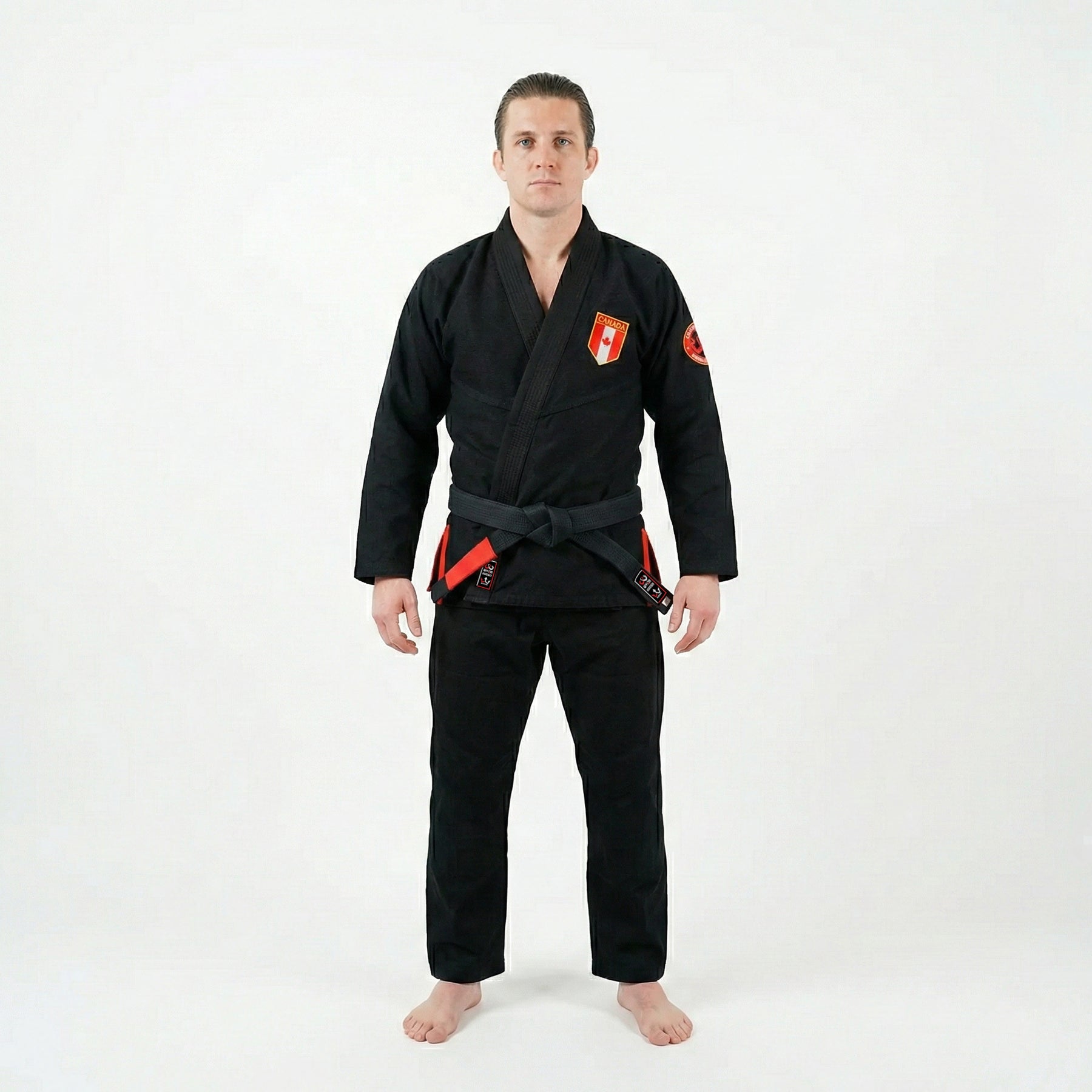 The Canadian Black BJJ Gi unites craftsmanship and pride, built for grapplers who value precision and resilience. Featuring a built-in sublimated rashguard lining with the Canadian flag, it delivers superior comfort, ventilation, and strength.